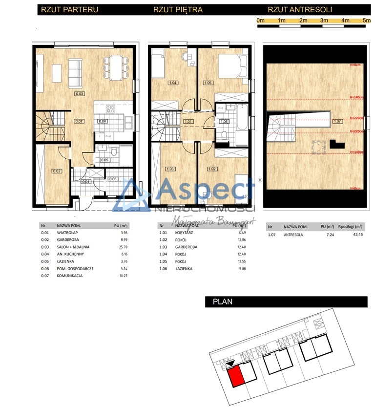 Antresola o pow. użytkowej 7,24m2 a powierzchnia podłogi wynosi 43m2 - idealna na biuro / magazyn / pokój rodziców.