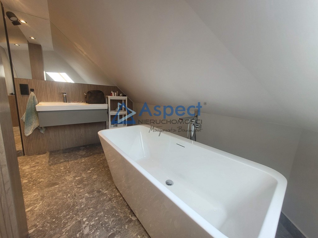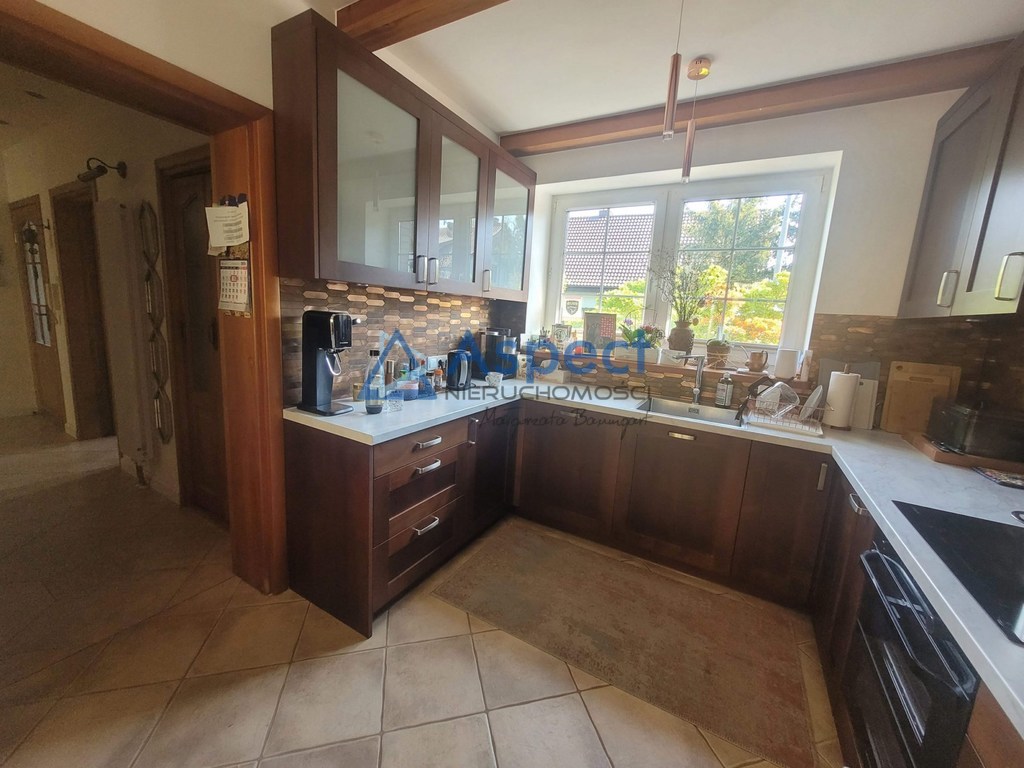 Bezrzecze, oś. Leśne. Dom wolnostojący o pow. 173 m2 powierzchni użytkowej i 210 m2 powierzchni całkowitej z garażem na jeden samochód w bryle budynku. Dom posadowiony na działce o pow. 797 m2, która została pięknie zagospodarowana altanką, grilem murowanym i dużym domkiem gospodarczym drewnianym. Na ogrodzie liczne nasadzenia, rozprowadzony podziemny system nawodnienia. Dom parterowy z poddaszem użytkowym po całkowitym remoncie w 2023 roku. Dach pokryty dachówka ceramiczną. Na parterze duży salon z kominkiem z wyjściem na ogród. Samodzielna duża kuchnia z oknami i drzwiami balkonowymi z wyjściem na taras. Meble kuchenne drewniane w zabudowie, sprzęt AGD /lodówka, zmywarka, płyta indukcyjna, piekarnik elektryczny, lodówka/, stół, krzesła. Przy kuchni wygodne pomieszczenie gospodarcze z półkami z wejściem z przedpokoju. Ponadto na parterze jest zlokalizowana widna łazienka z kabiną prysznicową w eleganckiej glazurze i terakocie oraz pokój typu gabinet  o pow. około 16 m2. Ponadto na parterze jest pomieszczenie pralnio-suszarni z zamontowanym piecem gazowym dwufunkcyjnym. Na podłodze w salonie parkiet dębowy,  w pozostałych pokojach deska sosnowa, w przedpokoju, kuchni i łazienkach terakota. Na piętro prowadzą wygodne schody w lekkiej konstrukcji drewnianej. Na piętrze 3 sypialnie z niewielkimi skosami, garderoba i łazienka ze skosem z wanną i kabina prysznicową. Okna nowe PCV, na ścianach tynki gładzone malowane. Dom zadbany, w pięknej lokalizacji w otoczeniu zieleni. W bliskiej odległości liczne sklepy, szkoła i inne obiekty użyteczności publicznej. Polecam, zapraszam na prezentację.Powyższe informacje zostały sporządzone na podstawie oświadczeń i nie są ofertą w rozumieniu przepisów prawa.Maja one jedynie charakter informacyjny, zalecamy ich osobistą weryfikację.