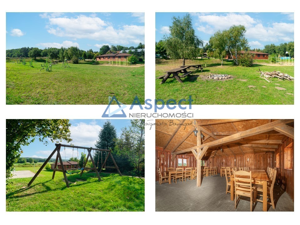 3. Chata biesiadna mogąca pomieścić kilkadziesiąt osób, a wokół niej miejsce na ognisko, stoły piknikowe, siłownia pod chmurką, boisko do koszykówki/siatkówki, huśtawki.