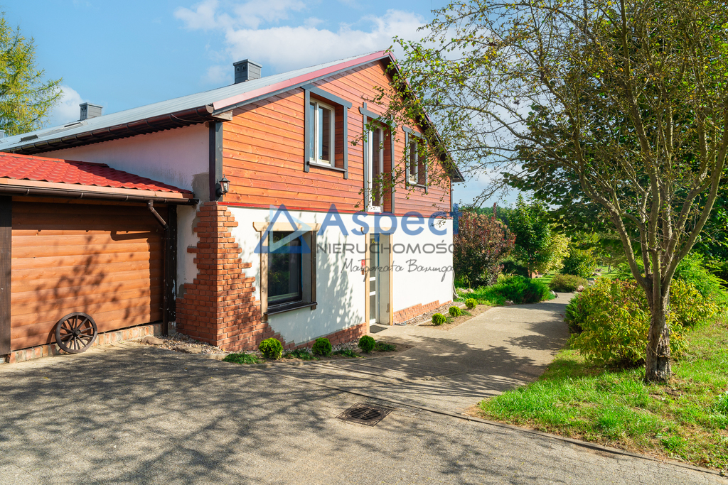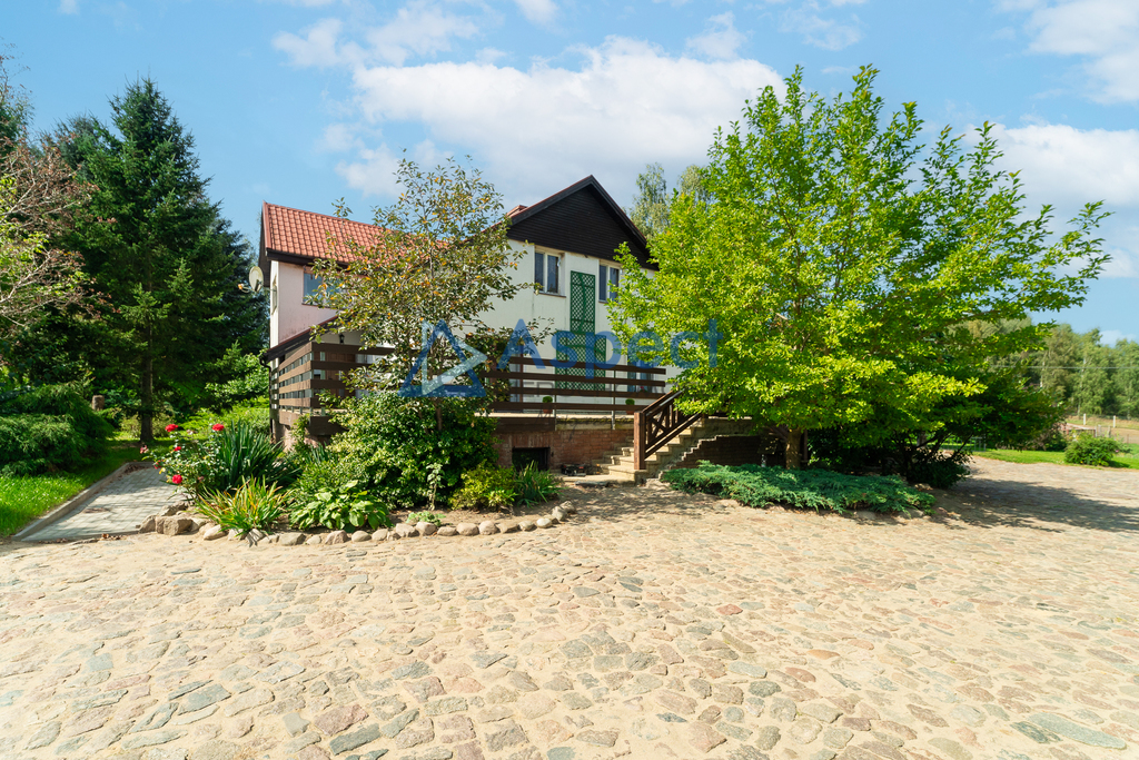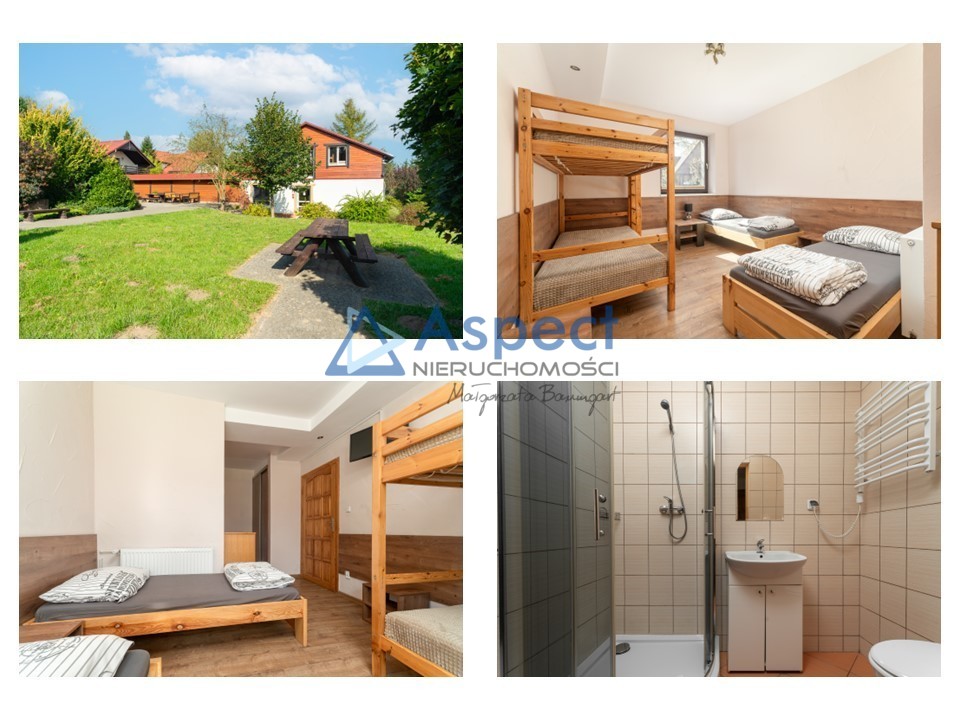 4. Dom mieszkalny dwupiętrowy z podpiwniczeniem oraz funcjonalnym układem pozwalającym na wynajem części pokojów. Na parterze znajduje się pokój dzienny wspólny, z którego możemy przejść do części mieszkalnej właściciela, która składa się z własnego salonu, sypialni, gabinetu, łazienki i kuchni, z dodatkowym prywatnym wejściem z drugiej strony budynku. Ze wspólnego pokoju dziennego prowadzą też schody na piętro, gdzie znajdziemy kolejne 4 pokoje z łazienkami.