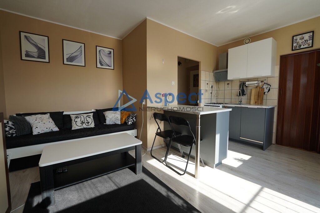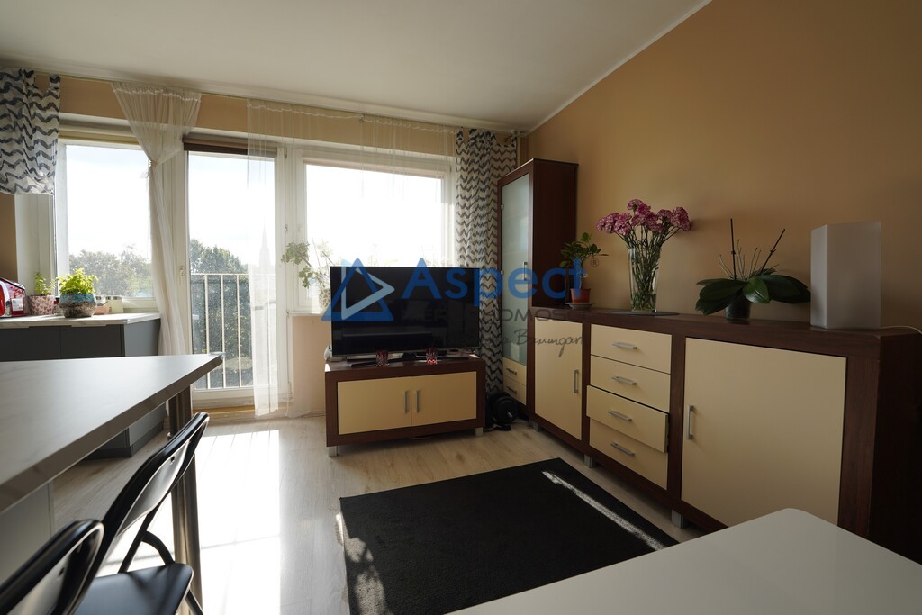 Na sprzedaż kawalerka z wydzieloną sypialnią(przeniesiona kuchnia-aneks w salonie) i francuskim balkonem.