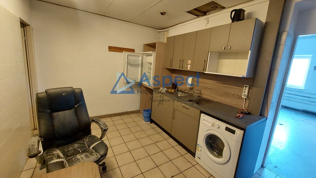 Część biurowa wymaga remontu, była wykorzystywana jako miejsce zamieszkania dla pracowników.