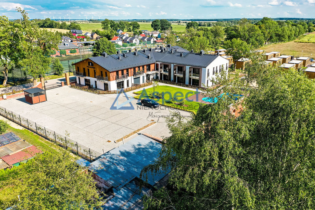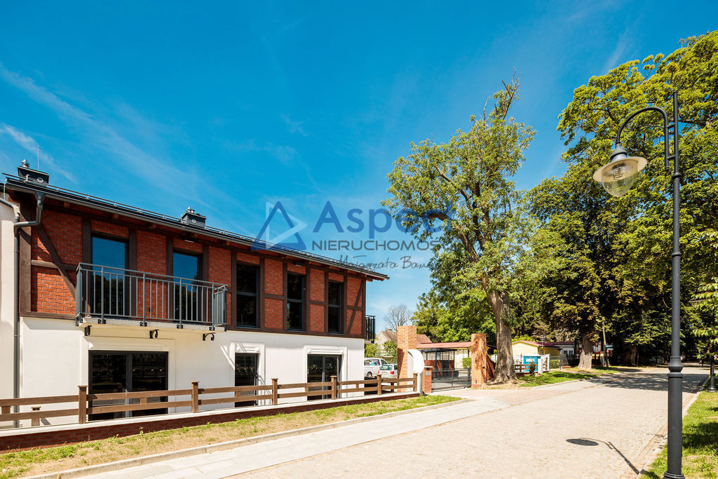 Proponowany apartament jest częścią inwestycji obejmującej 24 apartamenty o powierzchni od 29 m2 do 66,5 m2. Budynek stoi w miejscu pałacowej stajni i jest połączeniem nowoczesności z klimatem pobliskiego pałacu. Mur pruski oraz liczne drewniane elementy przepięknie nawiązują do byłej oraz istniejącej zabudowy.