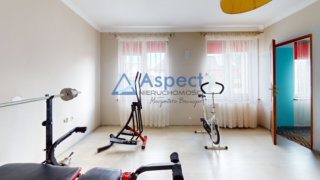 - Parter po częściowym remoncie zachwyca przestronnym salonem z klimatycznym kominkiem i aneksem kuchennym – idealnym miejscem na rodzinne spotkania. Znajdziesz tu także pokój fitness, dużą łazienkę oraz bezpośrednie wyjście na taras i patio, gdzie możesz cieszyć się świeżym powietrzem i zielenią.
