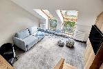 Piętro II/poddasze (10 apartamentów) w tym 6 apartamentów 2 poziomowych z łazienkami + 1 apartament 2 pokojowy z łazienką oraz 3 apartamenty 2 osobowe. Holl, komunikacja i klatka schodowa.
